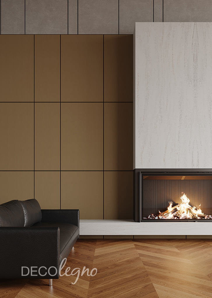 Een regelmatig ritme van verfijnde lijnen karakteriseert de Traccia structuur van Cleaf. Het subtiel voelbare hoog-laag effect geeft een elegante uitstraling aan dit decoratieve plaatmateriaal. Laat je verrassen door de combinatie van deze structuur met het goudkleurige decor FD49.